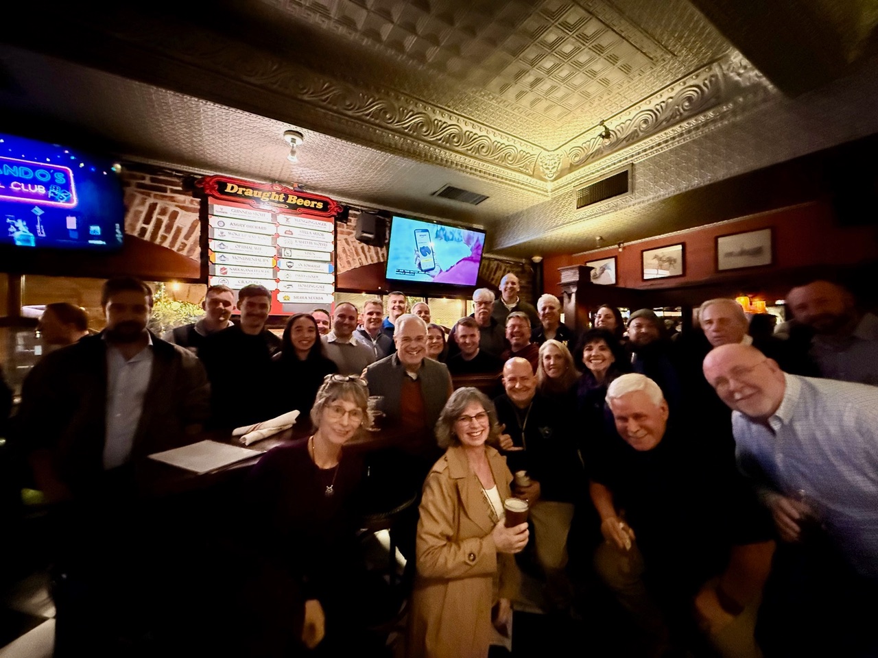A last minute happy hour at the Union Street Pub in Old Town drew quite a crowd on Wednesday, 12 November. The social event was originally scheduled for 5 November but was postponed after the Senior Leader Symposium was cancelled due to the government shutdown. A nice cross-section of members — and prospective members — showed up, including some brand-new members. It was great to see several junior officers mingling among the crowd as well. Notably, there was a strong showing of 5-6 new Direct Commission Officers (DCOs) — future NIP members — thanks to Ensign Samantha Leung, who invited them. Many of the DCOs are going participate in the upcoming change of command on Saturday for Captain Kathleen Powell, who was also present. Captain Powell will be turning over command of NIFR REDCEN Washington DC to Captain Brian “Wookie” Kalamajka.