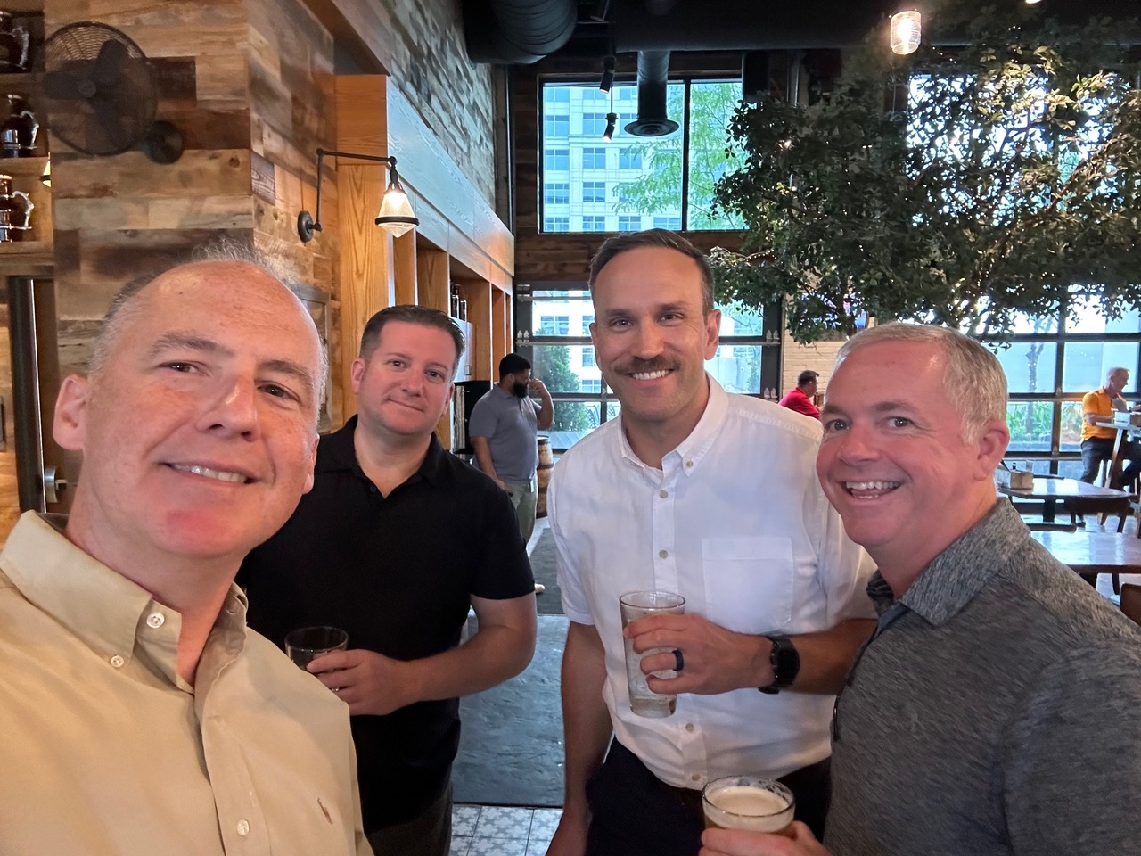 Several NIP members gathered with others at The Grain in Norfolk, Virginia, on Thursday, 25 July, for a no-host social in honor of COMONI Rear Admiral Michael Brookes’ visit to the area. The Deputy Commander of ONI, Mr. Andrew Richardson, and RADM Brookes’ wife Wendy were also there in addition to RDML Josh Himes and Hampton Roads chapter president John “JD” Dullum. It was fun, casual opportunity and perfect setting for Naval Intelligence professionals, both local and from out of town, to catch up ahead of the next day’s retirement and change of command for IBoss Vice Admiral Kelly Aeschbach.