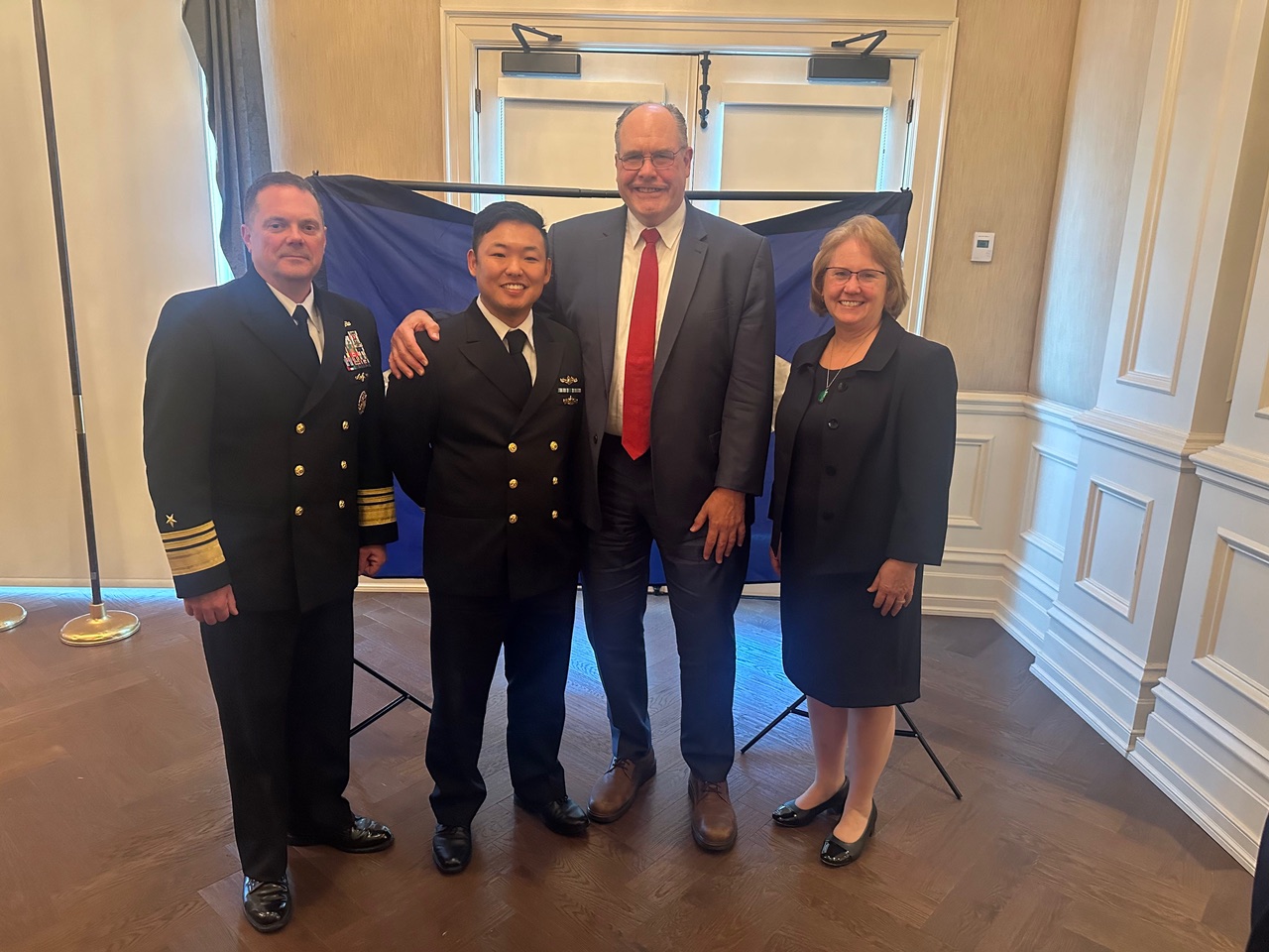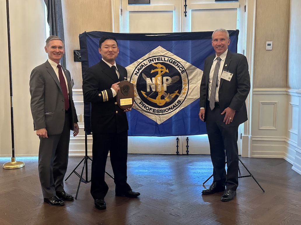 During the luncheon, retired Captains Bill Hamblet and Bill Bray, representing USNI, recognized the USNI/NIP Intelligence Essay contest winners. They awarded the first prize to Lieutenant Commander Saungwon Ko, who had flown in from Sixth Fleet in Naples, Italy to receive his award in person. Ko’s winning essay is titled “Beyond the GI-UK Gap: Naval Intelligence and China’s Arctic Submarine Threat” and will be published in the December issue of Proceedings.
