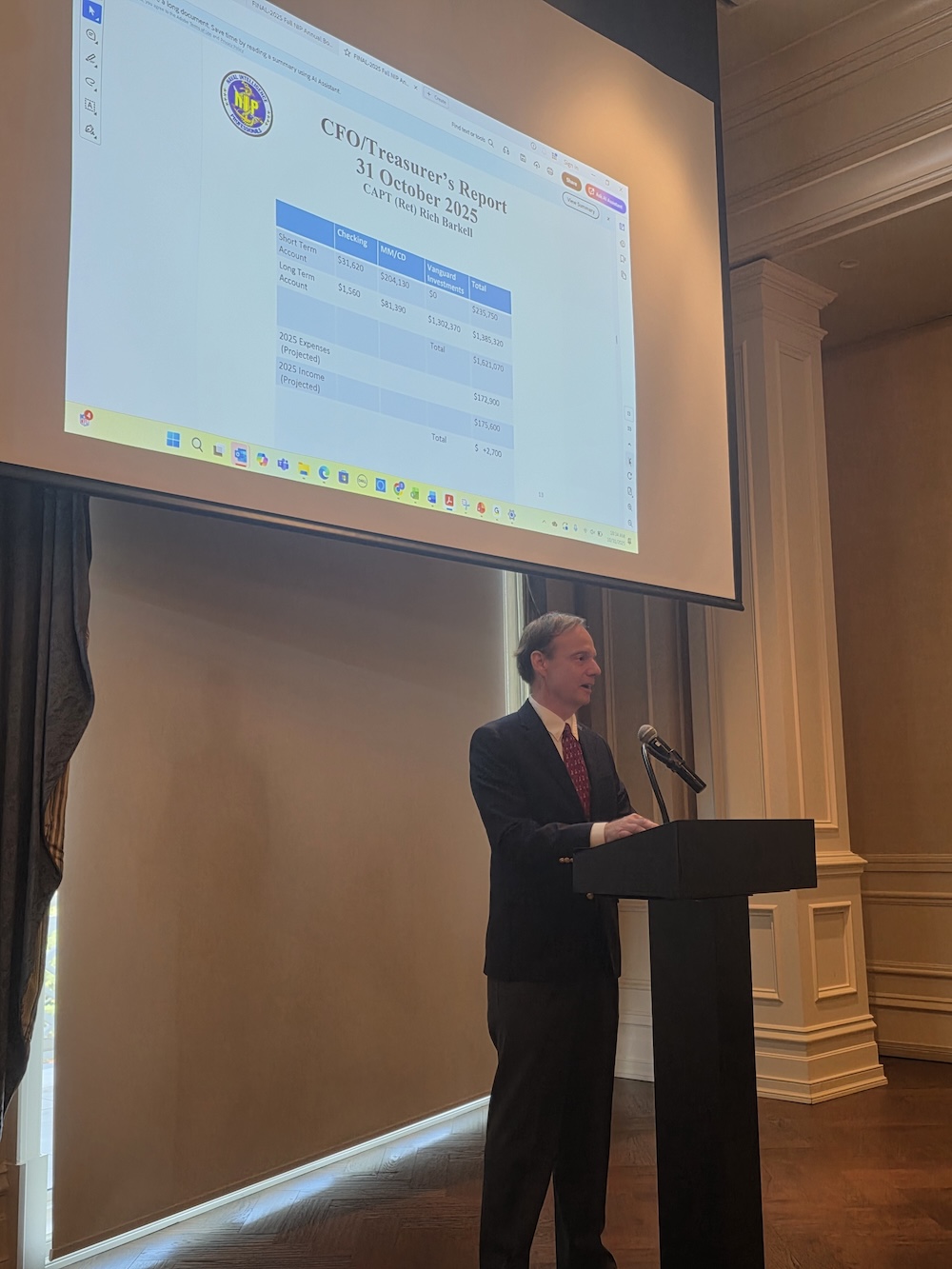 ARMY NAVY COUNTRY CLUB, 31 October 2025. NIP’s annual membership meeting and Fall luncheon at the Army Navy Country Club in Arlington, Virginia fell on Halloween this year. It was another great reunion of Naval Intelligence professionals, during which the audience was treated to remarks by Vice Admiral Tom Henderschedt, the Joint Staff Director for Intelligence.