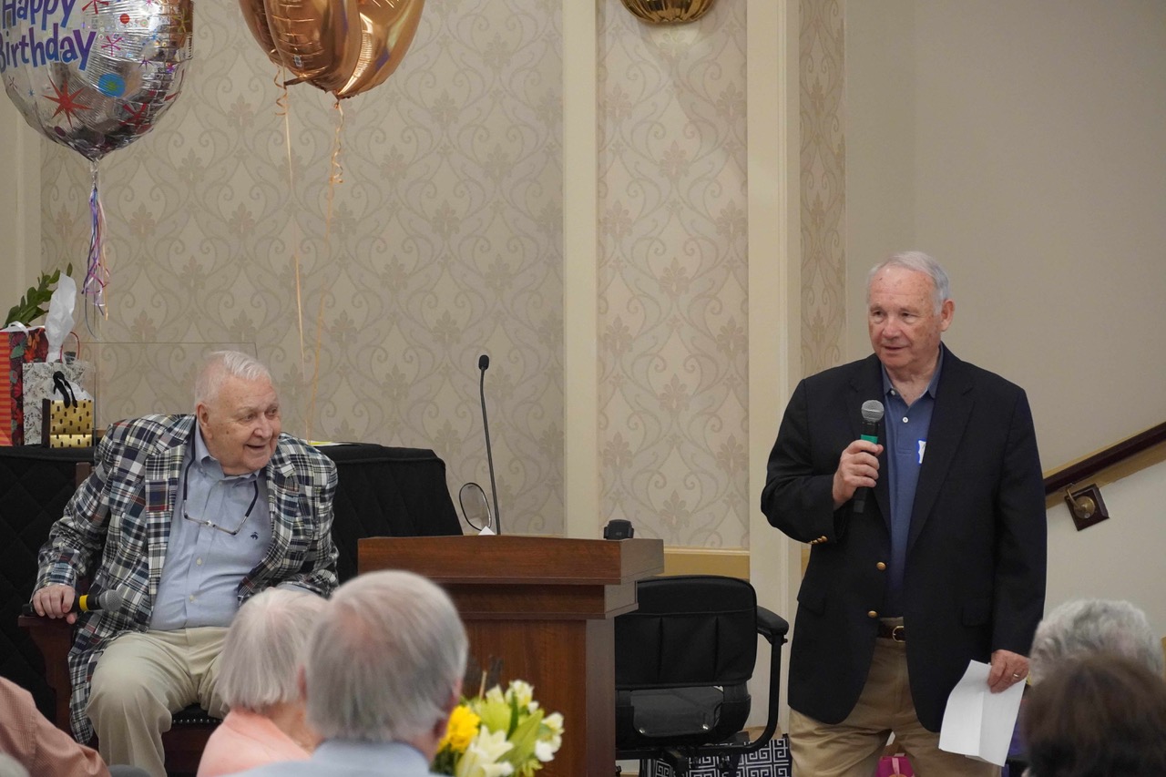 Captain (Ret) Paul Lasko, who served as the first commanding officer of the Navy and Marine Corps Intelligence Training Center (NMITC) in Dam Neck, Virginia Beach, celebrated his 90th birthday on 4 April 2026 with nearly a hundred family members, friends, and former colleagues at the Ginger Cove Retirement Community, where he lives in Annapolis, Maryland. Paul treated all gathered to a delicious brunch, and entertained all assembled with his characteristic witty banter. Throughout the party, lively videos of the terrific life and travels he shared with his late wife Virginia played in the background.