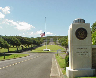 (Entrance to the National Memorial Cemetery of the Pacific in The Punchbowl in Honolulu)